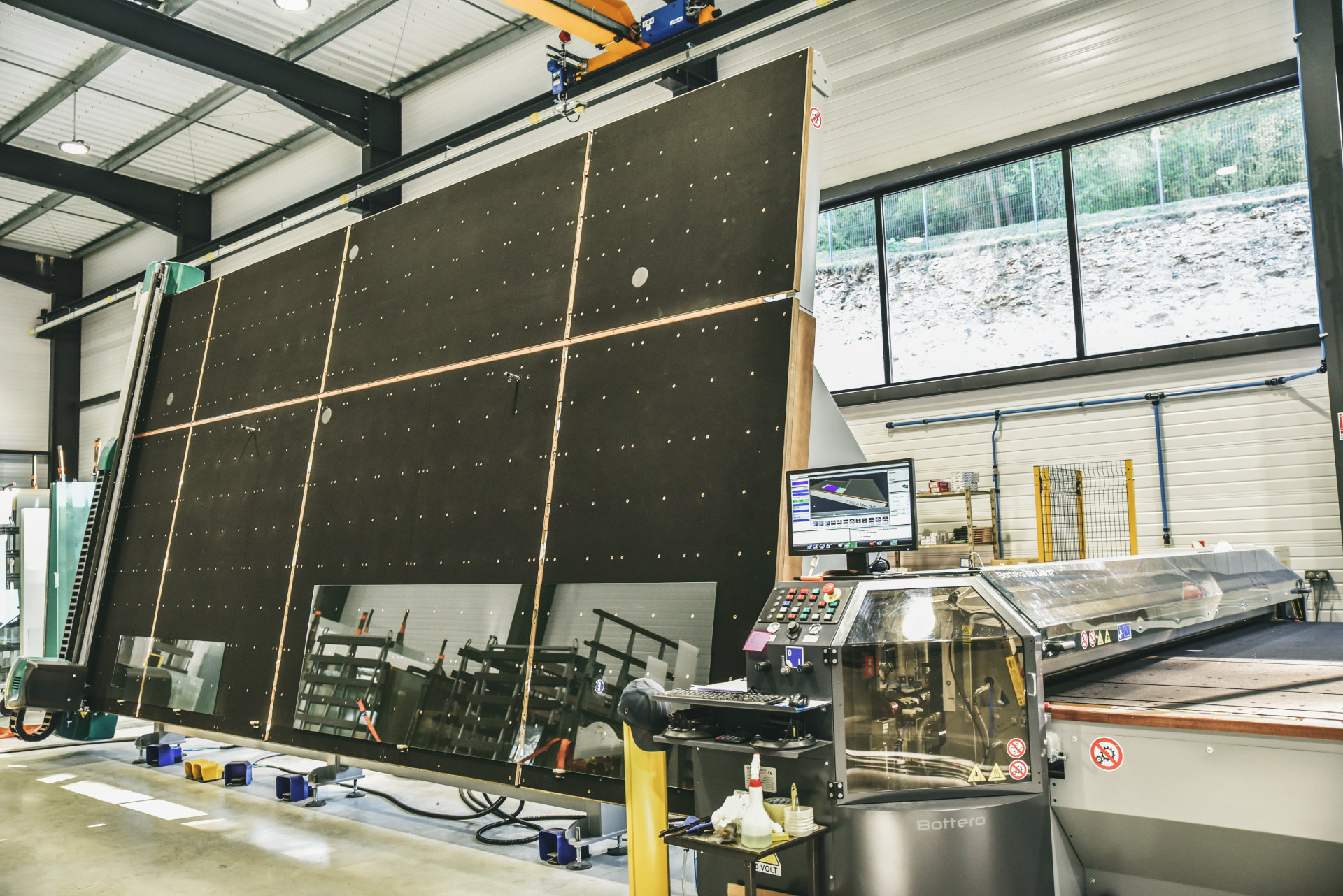 Découpe de verres simples et de verres feuilletés, droite ou en forme (table de coupe).